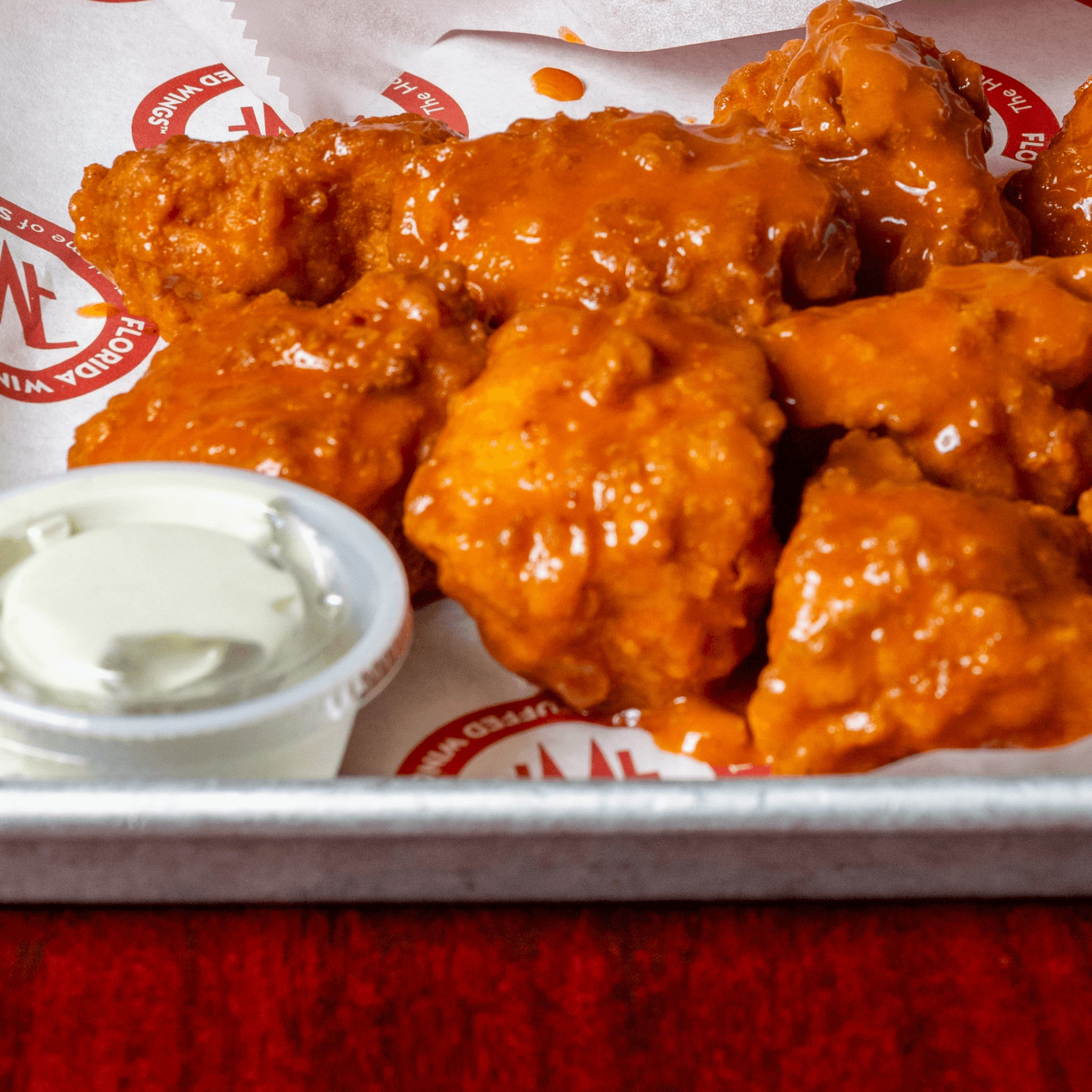 Jumbo tenders, hand-breaded and fried. Comes plain or tossed in your favorite FWF sauce. Served with house ranch or blue cheese dressing.